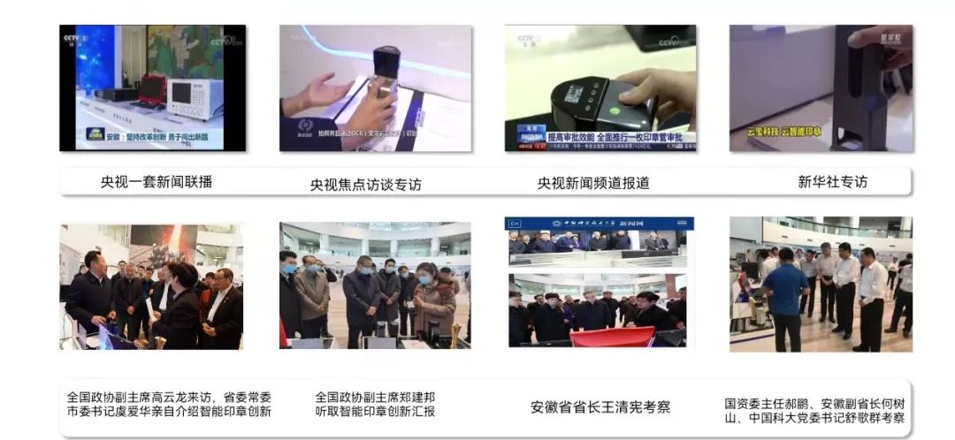 云璽在一體式智能印章領域具有國際領先地位,產品三次被央視新聞聯播、焦點訪談報道,并接受新華社專訪。已被評為安徽省“三首產品館”產品、合肥市“三新產品”、高新區新經濟示范產品。
