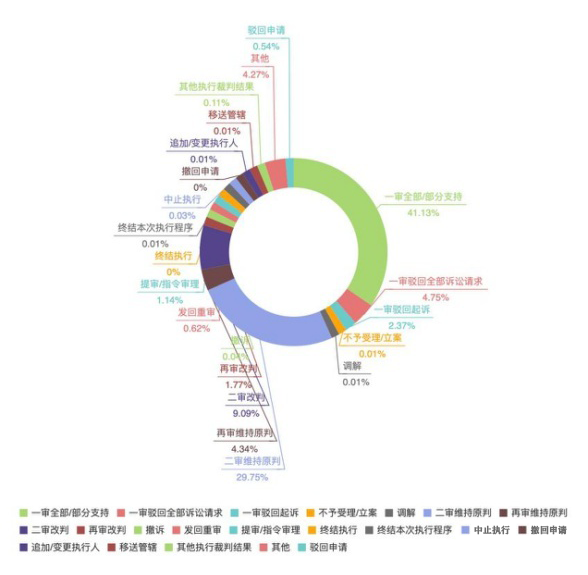 據不完全統計三年的案件數量達到52760件:一審全部支持達到41.13%,不服一審判決二審維持原判達29.75%。