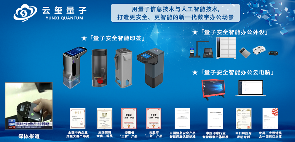 量子信息未來產業科技園是以中國科大和合肥高新區為共同主體,聯合科技領軍企業,聚焦量子科技方向,規劃建設未來產業科技園;以完善體制機制為重點,培育引進高層次科技領軍人才和創新團隊,提升專業化科技成果轉化和孵化能力,構建未來產業應用場景,打造極具活力、引領未來、享譽世界的“量子中心”。安徽云璽量子科技有限公司位于中國科大先進技術研究院未來中心,注冊資本2600萬元。公司是國家信創工委會成員企業,中國信創500強企業,合肥市量子信息產業重點企業。從事量子信息技術和人工智能技術融合創新,打造新一代更安全、更智能數字辦公產品。產品包括量子安全智能辦公和量子安全智能印簽產品,并為用戶提供量子安全網絡、量子安全云服務整體解決方案。公司是一體式智能印章技術原創發明人,擁有中日韓發明專利,獲國務院國資委央企熠星大賽全國二等獎。全球首創發明了內置垂直翻轉取墨技術、可驗碼防偽智能印章技術,實現對日歐國際先進印章技術的領先,獲中日韓多項發明專利。云璽量子在世界印章行業實現技術領先、專利領先、標準領先,引領千年傳統印章向新一代智能印章的創新變革,徹底解決社會印簽管控難題。自主研發的量子安全智能辦公系統獲全國信創大賽三等獎(長三角區域第二名),包括量子安全云辦公應用軟件、云服務,量子安全云電腦,量子安全智能外設、量子安全智能硬件終端。通過量子安全云服務和標準化插件,為用戶通用云辦公、云服務提供輕量化量子安全技術升級方案。公司現有機構股東: