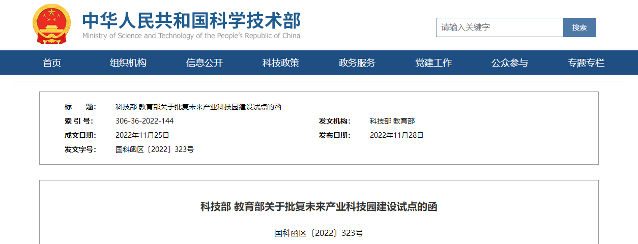 科技部 教育部關于批復未來產業科技園建設試點的函