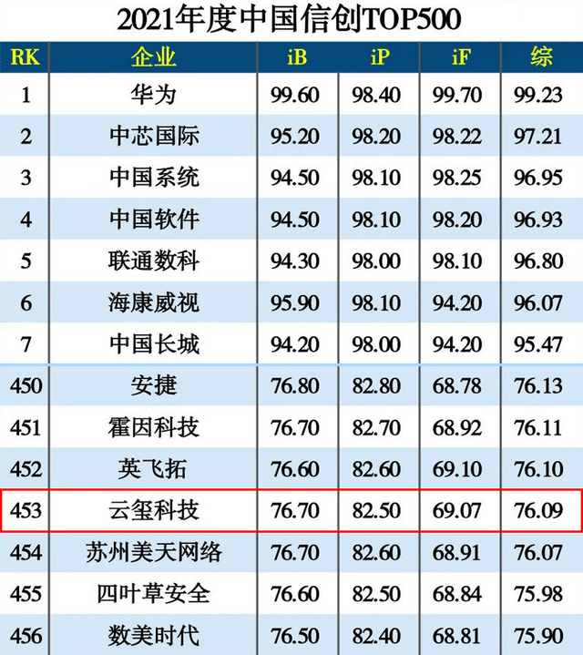 圖1、云璽2021中國信創500強排行榜單名次(來源:互聯網周刊)