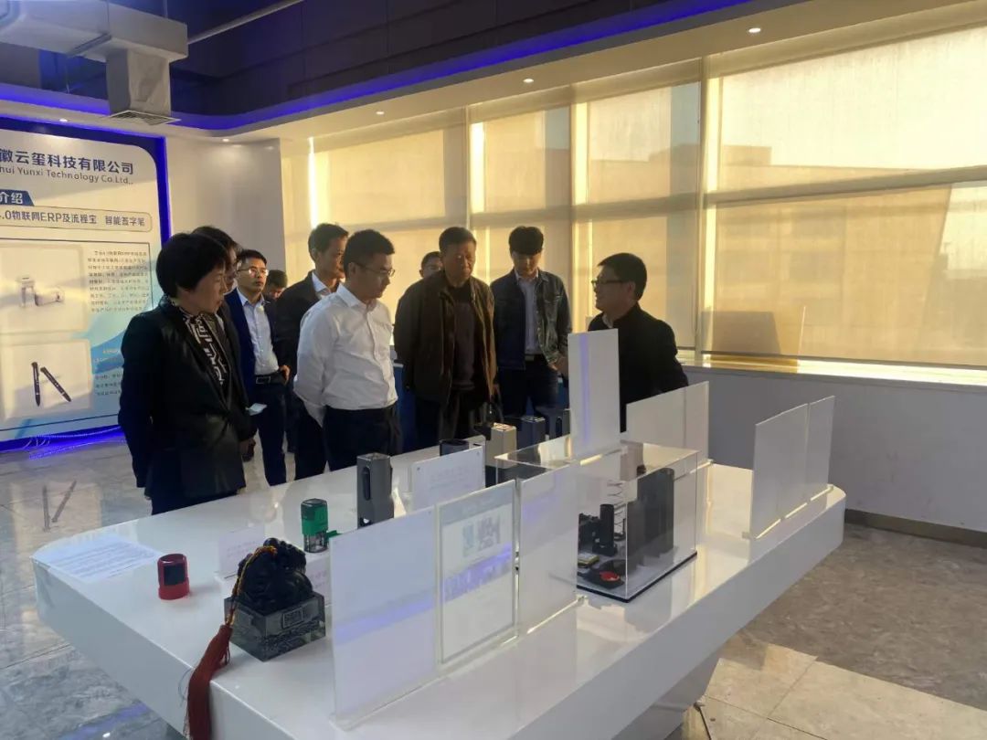 10月19日下午,安徽省合肥市委常委袁飛蒞臨安徽云璽量子科技有限公司(以下簡稱“云璽量子”)深入調研指導,市發改委主任拱艷 、市投促局副局長江小軍、高新區管委會副主任方向民、市科技局總工程師高致遠等陪同調研。中國科技大學先進技術研究院領導湯家駿、云璽量子負責人童迎偉接待。