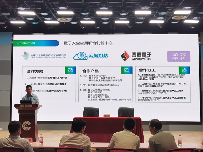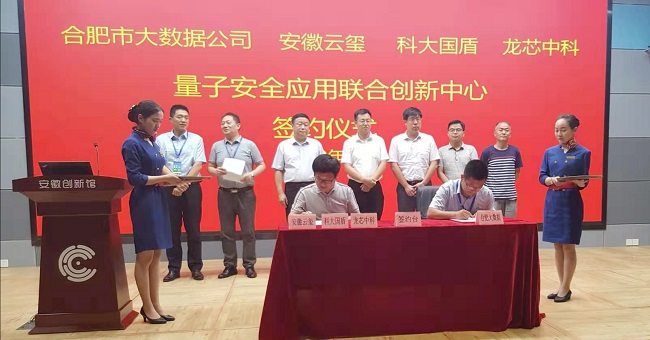 7月23日下午,由合肥市大數據資產運營公司聯合云璽科技、科大國盾量子、龍芯中科等四家產業關聯公司成立“量子安 全應用聯合中心”簽約儀式在安徽創新館隆重舉行。