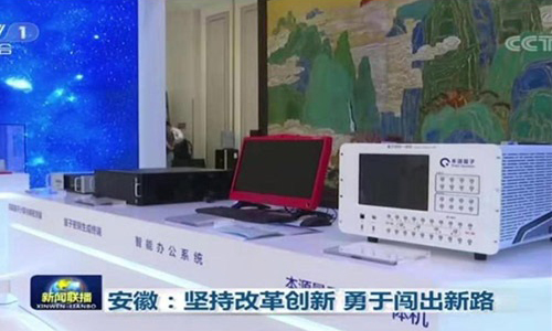 中共安徽省委書記李錦斌、省長李國英、安徽創新館主任陳林等向與會中 央領導介紹自主可控量子安 全云智能辦公系統