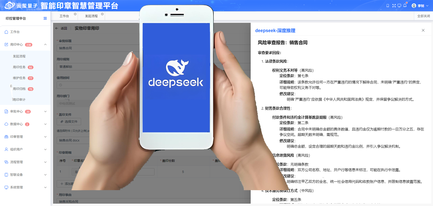 近日,中國智能印章原創發明人、標準主導起草者、行業領導者,云璽量子再實現智能印章行業的重大技術突破,正式官宣云璽量子智能印章智慧管理平臺實現DeepSeek大模型深度創新融合。通過高階AI技術賦能,實現AI智能印章與AI智能合同全流程高階AI智能化管理,打造全流程、全功能、無漏洞的AI…
