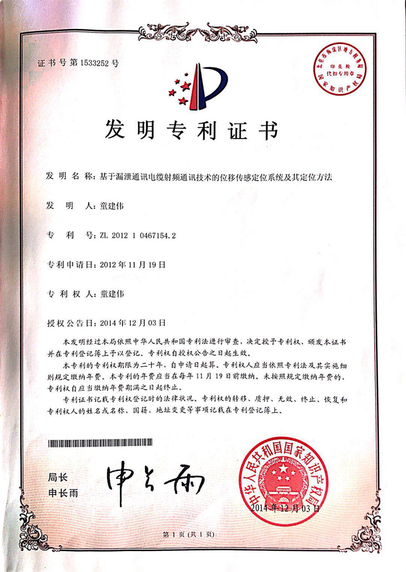 基于漏泄通訊電纜射頻通訊技術的位移傳感定位系統及其定位方法